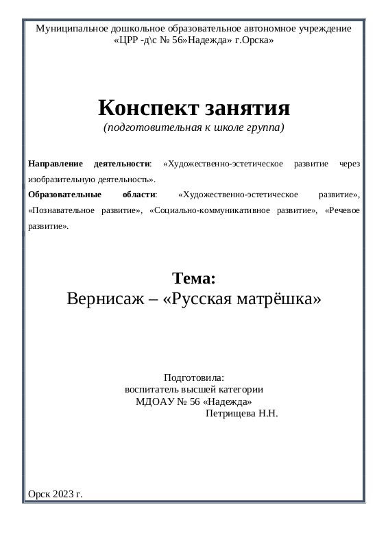 Место проведения: МДОАУ «ЦРР – д/с № 56» г. Орска»
